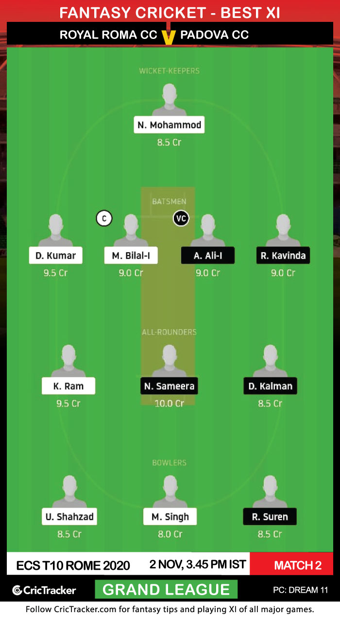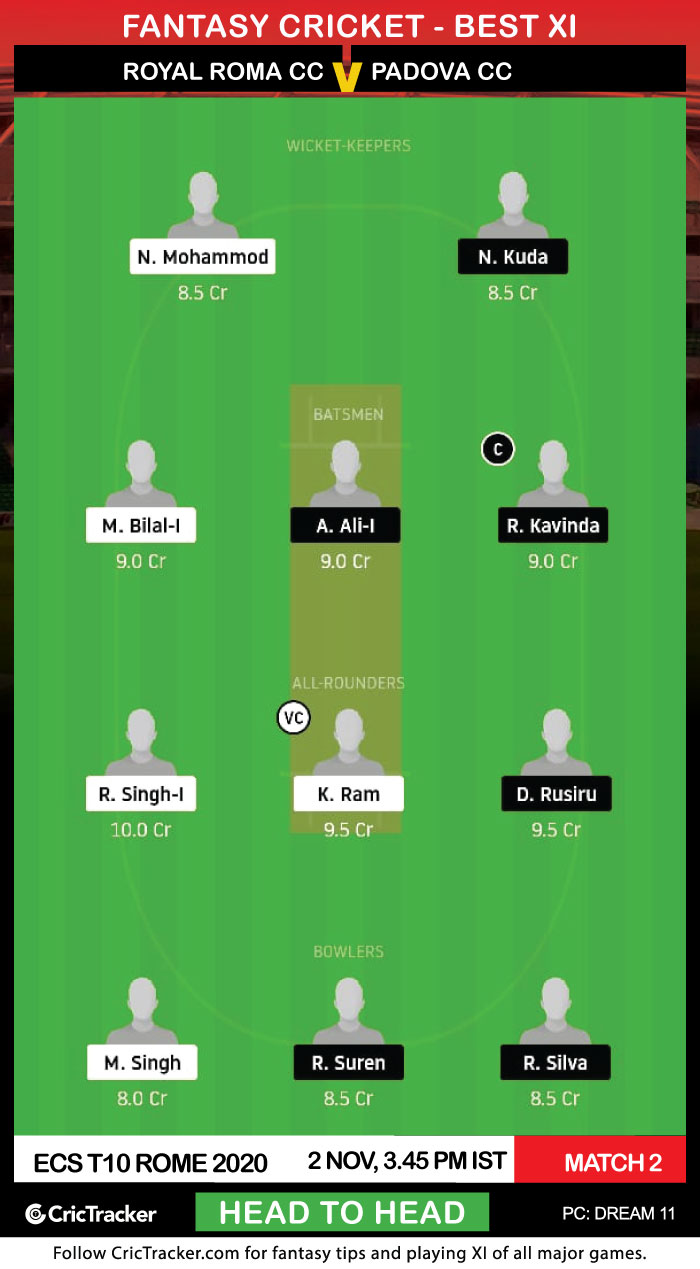 Royal Roma Cricket Club are expected to start their ECS T10 2020 campaign with a win over Padova Cricket Club.